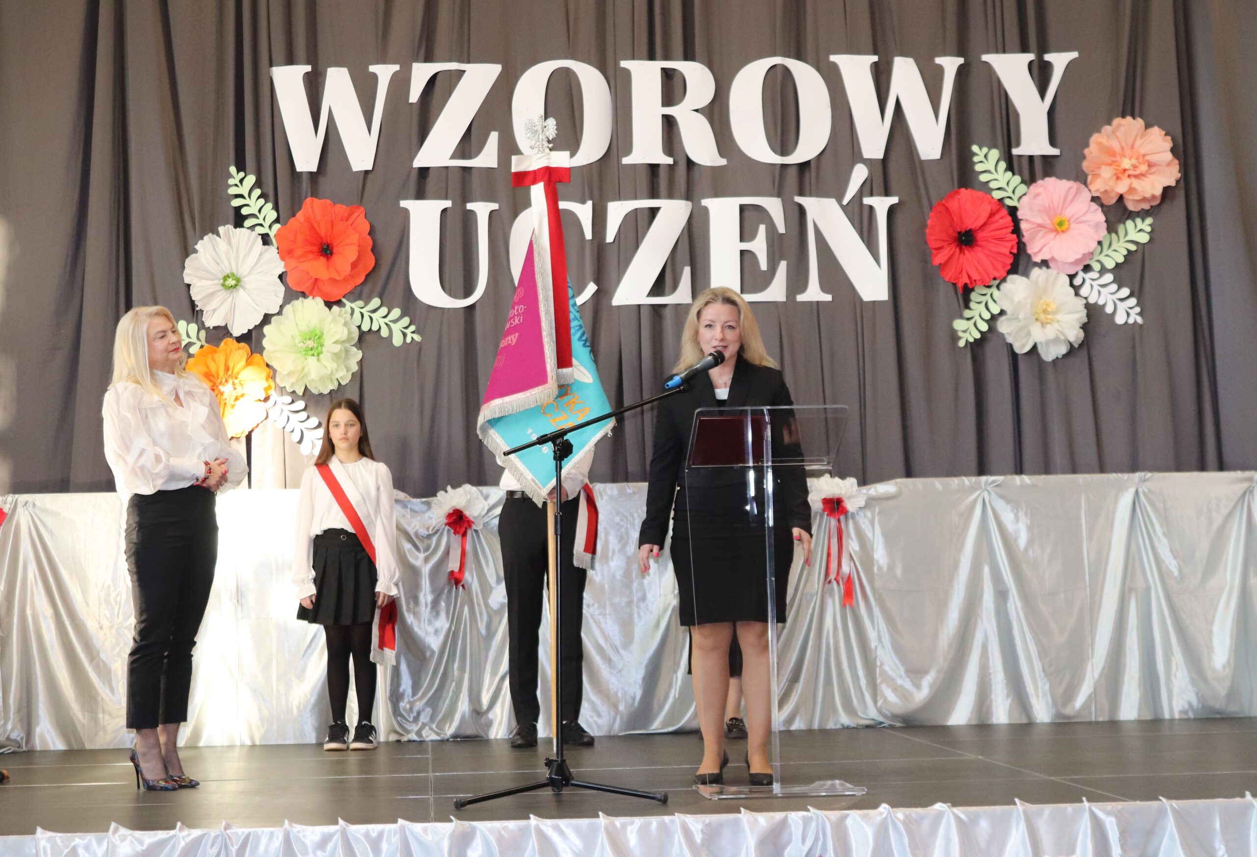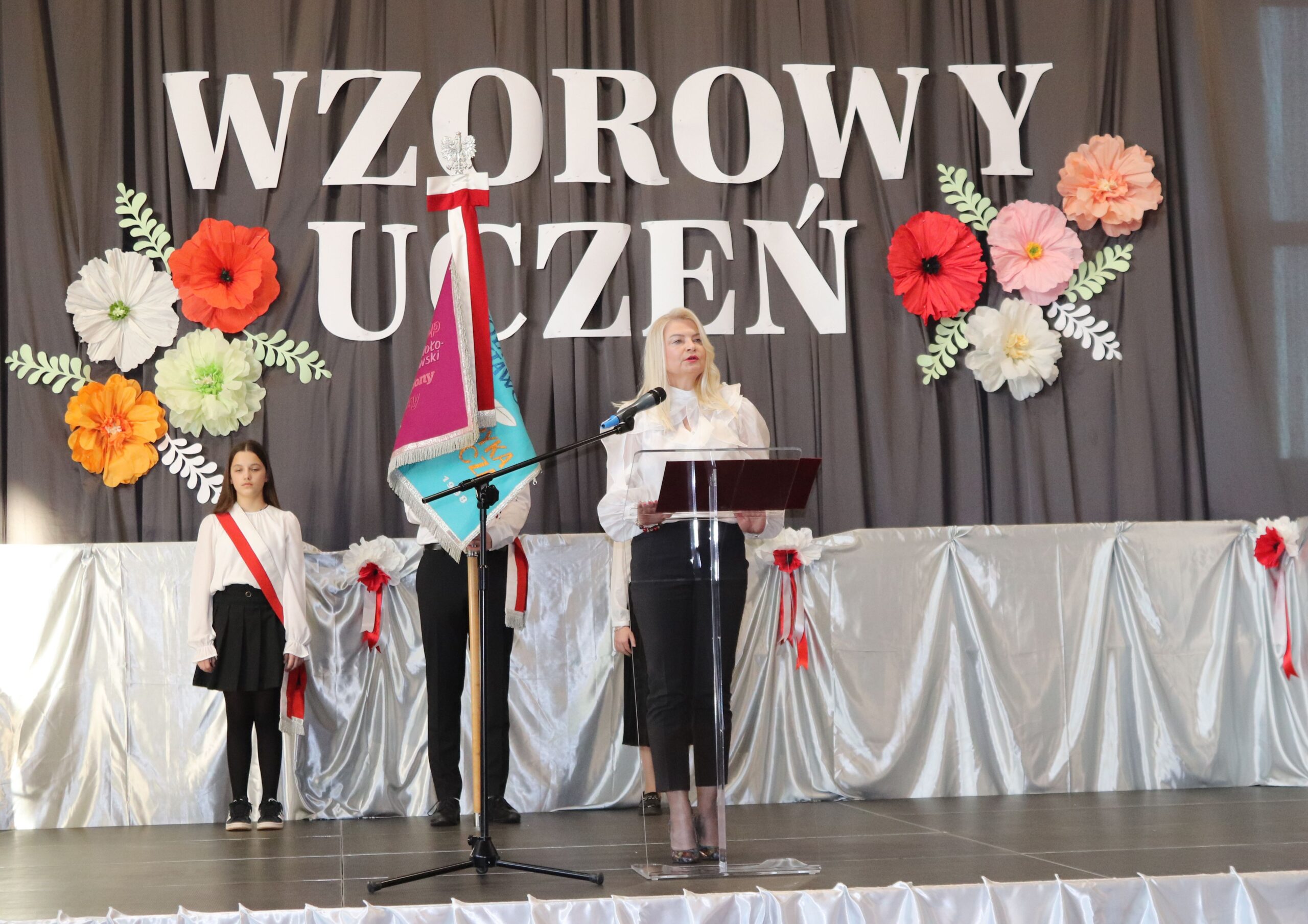 W swoim wystąpieniu Pani Wójt Anna Obolewicz pogratulowała uczniom i nauczycielom ciężkiej pracy oraz osiągniętych wyników. Podkreśliła sukcesy sportowe naszych uczniów i ponownie wyraziła uznanie dla młodych artystów za spektakl zaprezentowany w Teatrze im. Andreasa Gryphiusa w Głogowie.