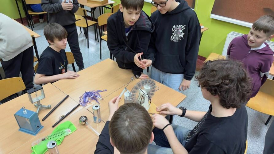 Pokazy prowadzone były przez uczniów klas ósmych. Do udziału w doświadczeniach chętnie włączyli się także uczniowie klasy szóstej, którzy z przedmiotem fizyka spotkają się dopiero we wrześniu. Była to dla nich doskonała okazja, aby już teraz zobaczyć, jak interesujący i inspirujący może być świat fizyki.