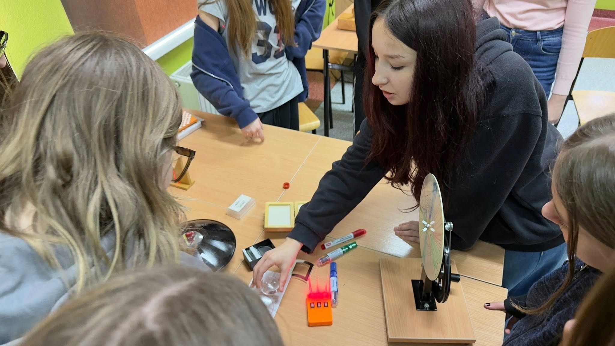 Pokazy prowadzone były przez uczniów klas ósmych. Do udziału w doświadczeniach chętnie włączyli się także uczniowie klasy szóstej, którzy z przedmiotem fizyka spotkają się dopiero we wrześniu. Była to dla nich doskonała okazja, aby już teraz zobaczyć, jak interesujący i inspirujący może być świat fizyki.