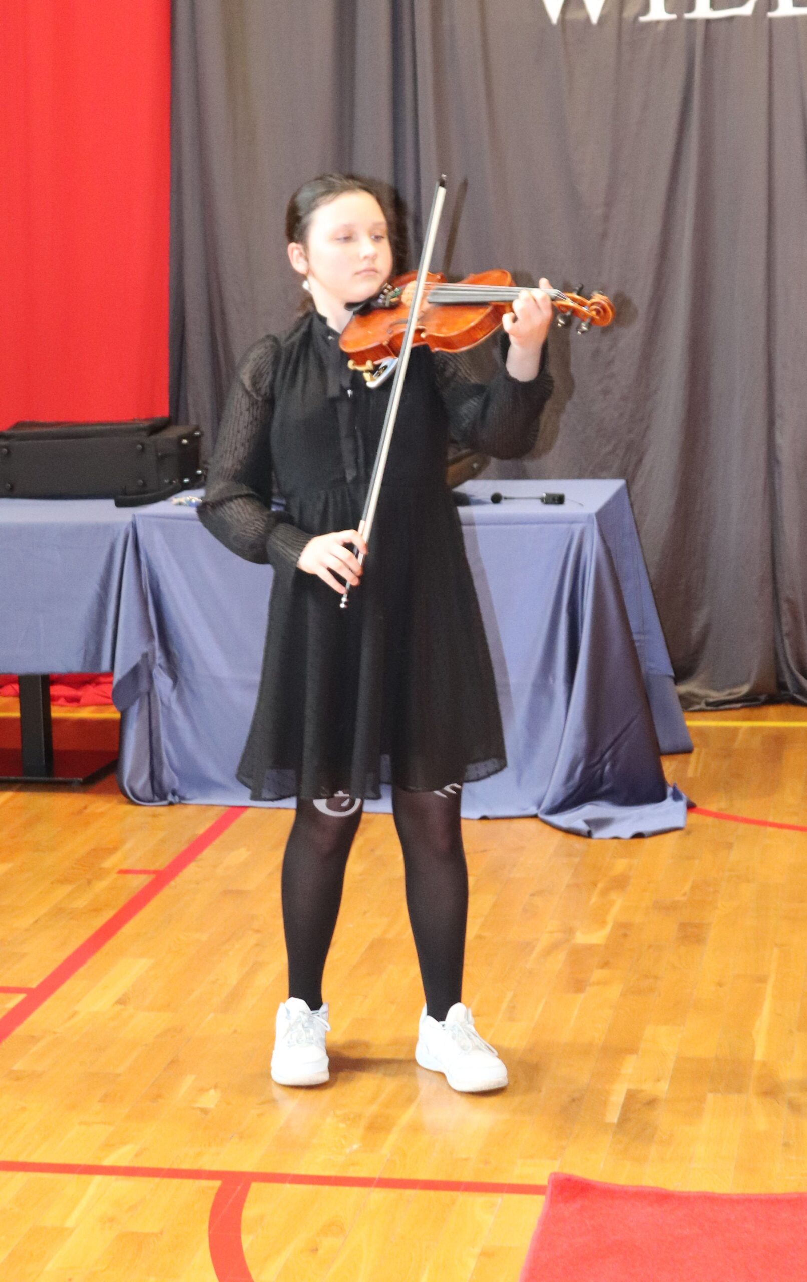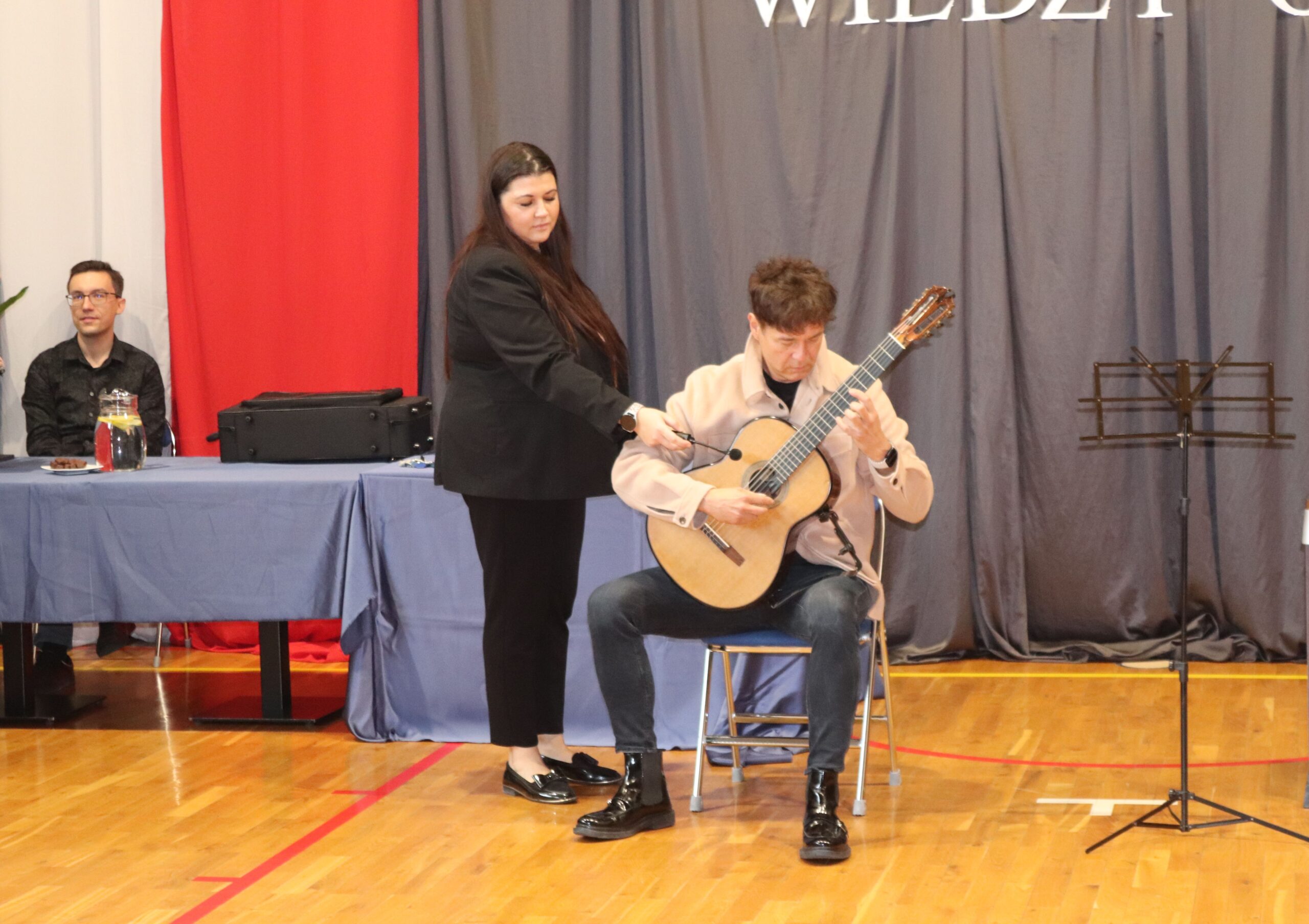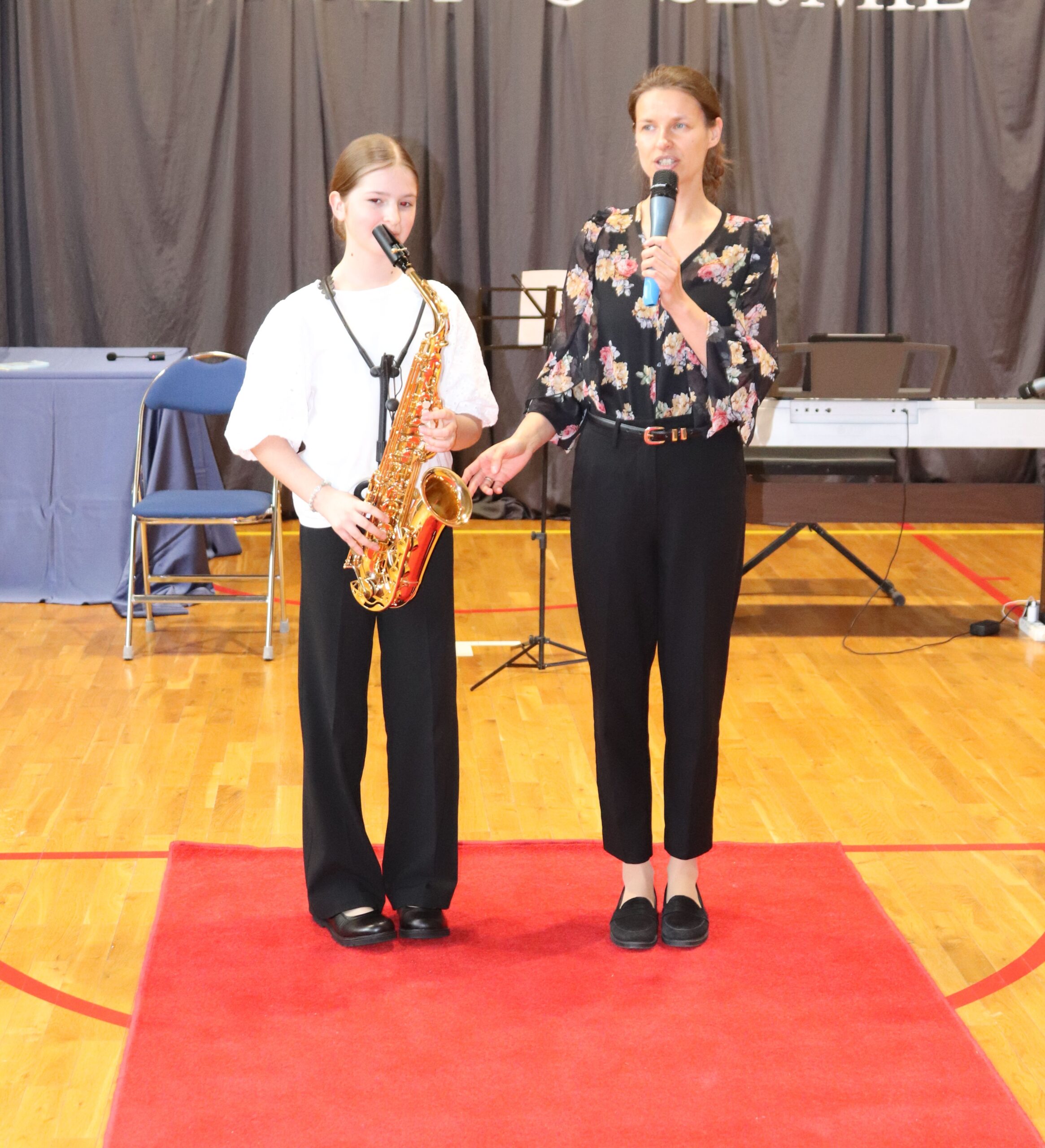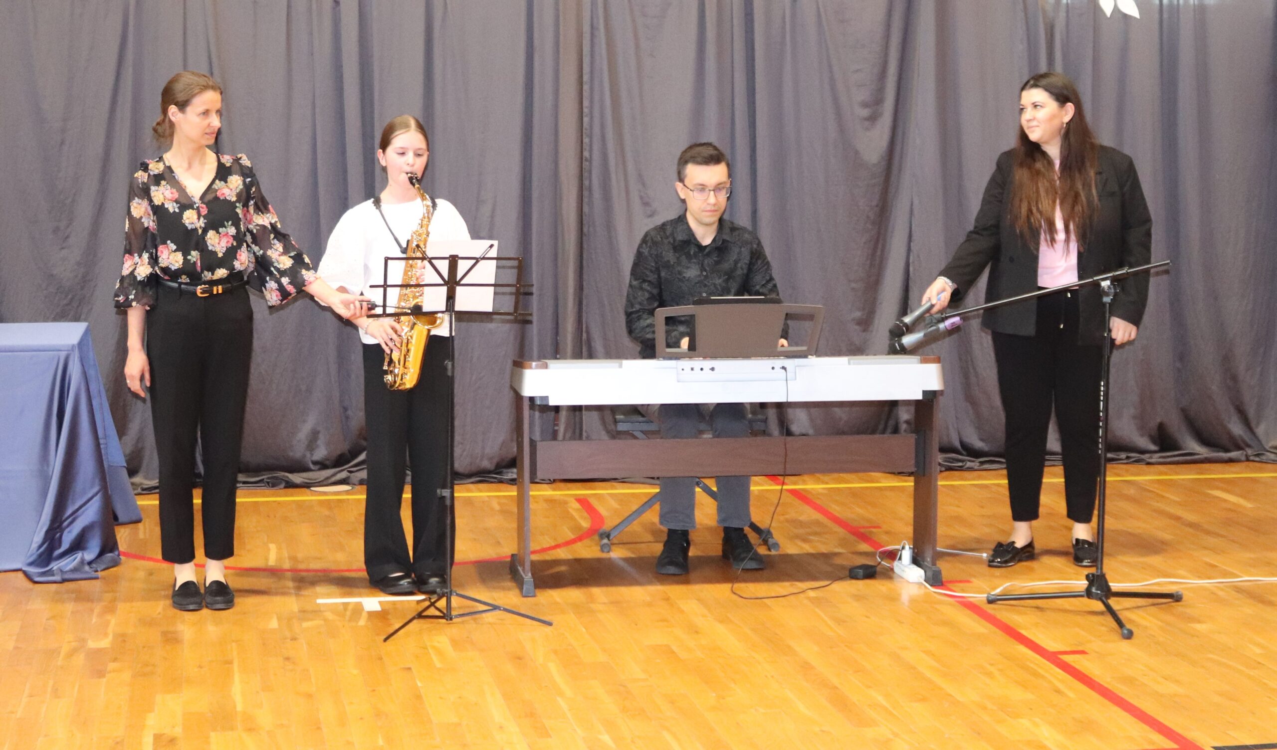 Podczas koncertu zaprezentowali się również uczniowie naszej szkoły: na pianinie Jagoda Nadymus, na skrzypcach Lena Kuczyńska oraz Nadia Gawlik, na akordeonie Jadwiga Gargol, a na flecie Milena Gawlik. Mogliśmy także podziwiać niezwykły duet mamy i córki – Leny oraz pani Katarzyny Kuczyńskiej.