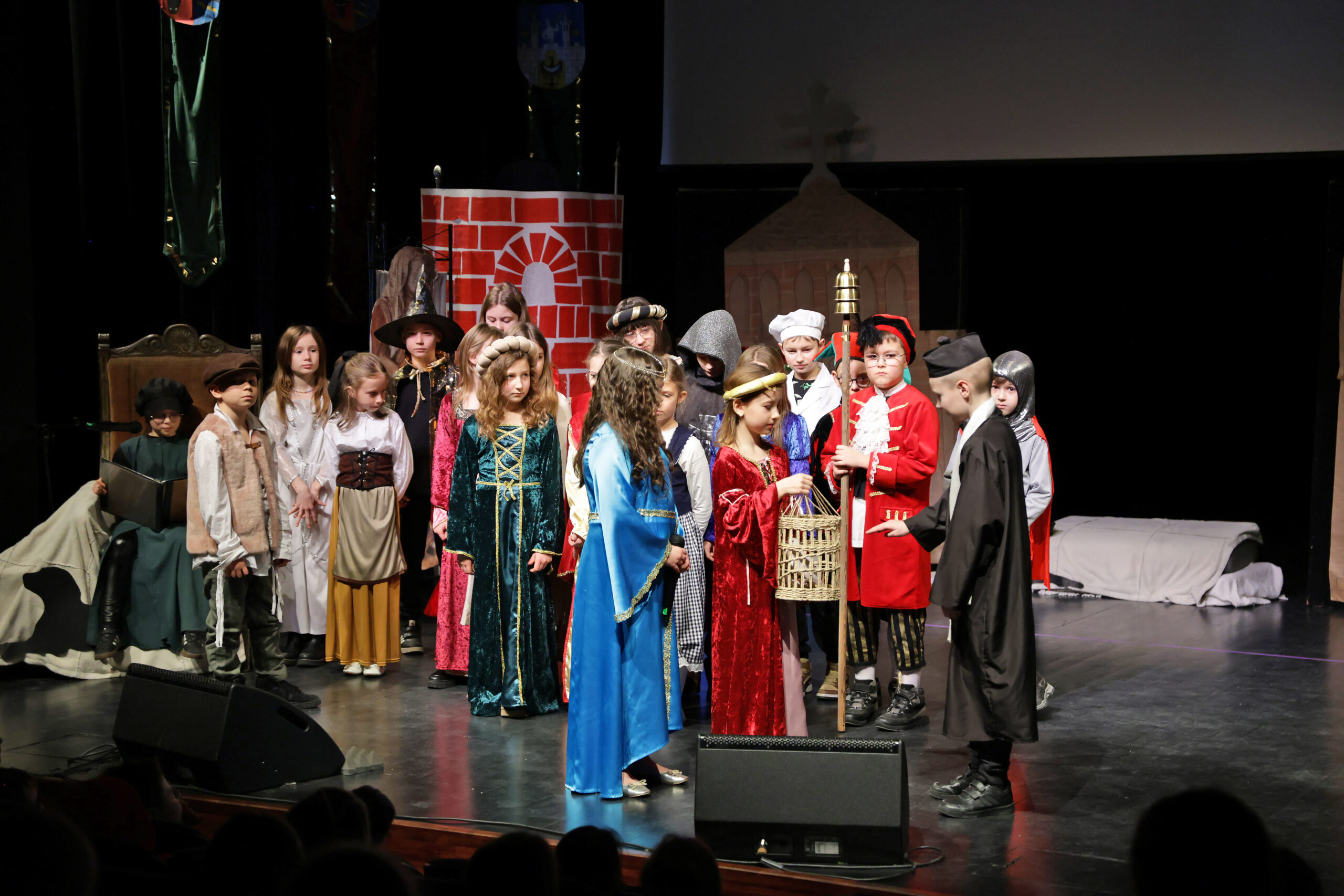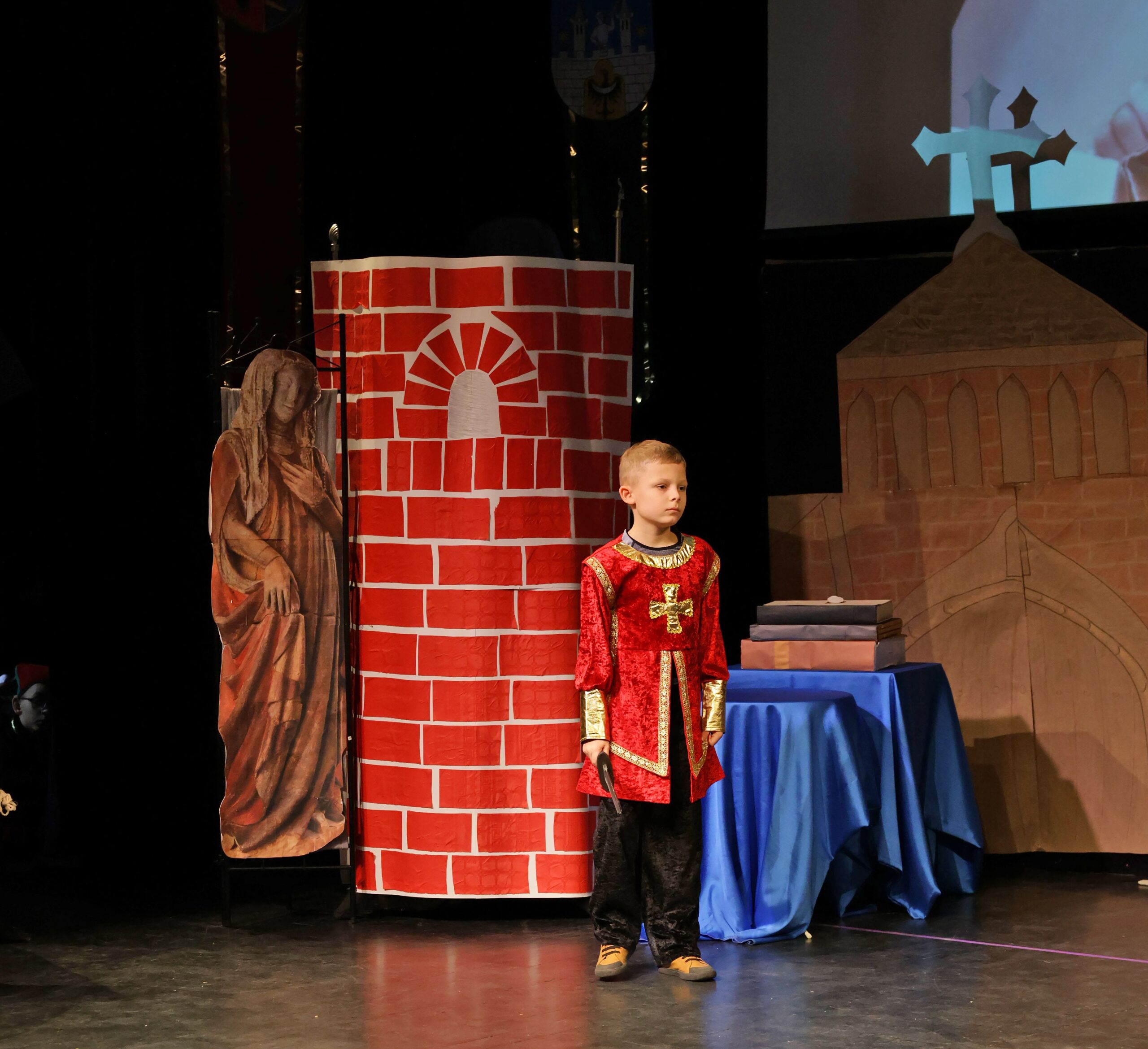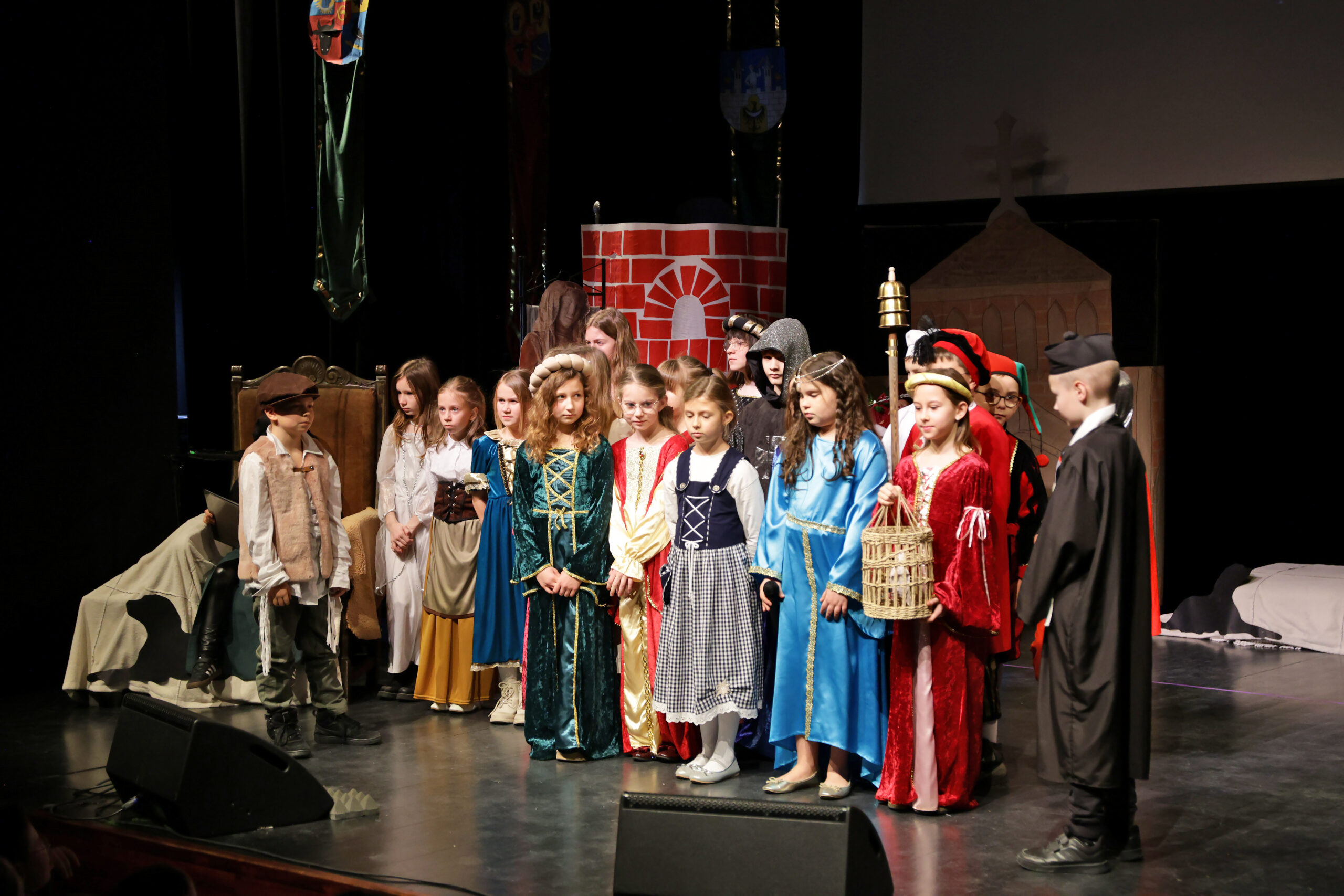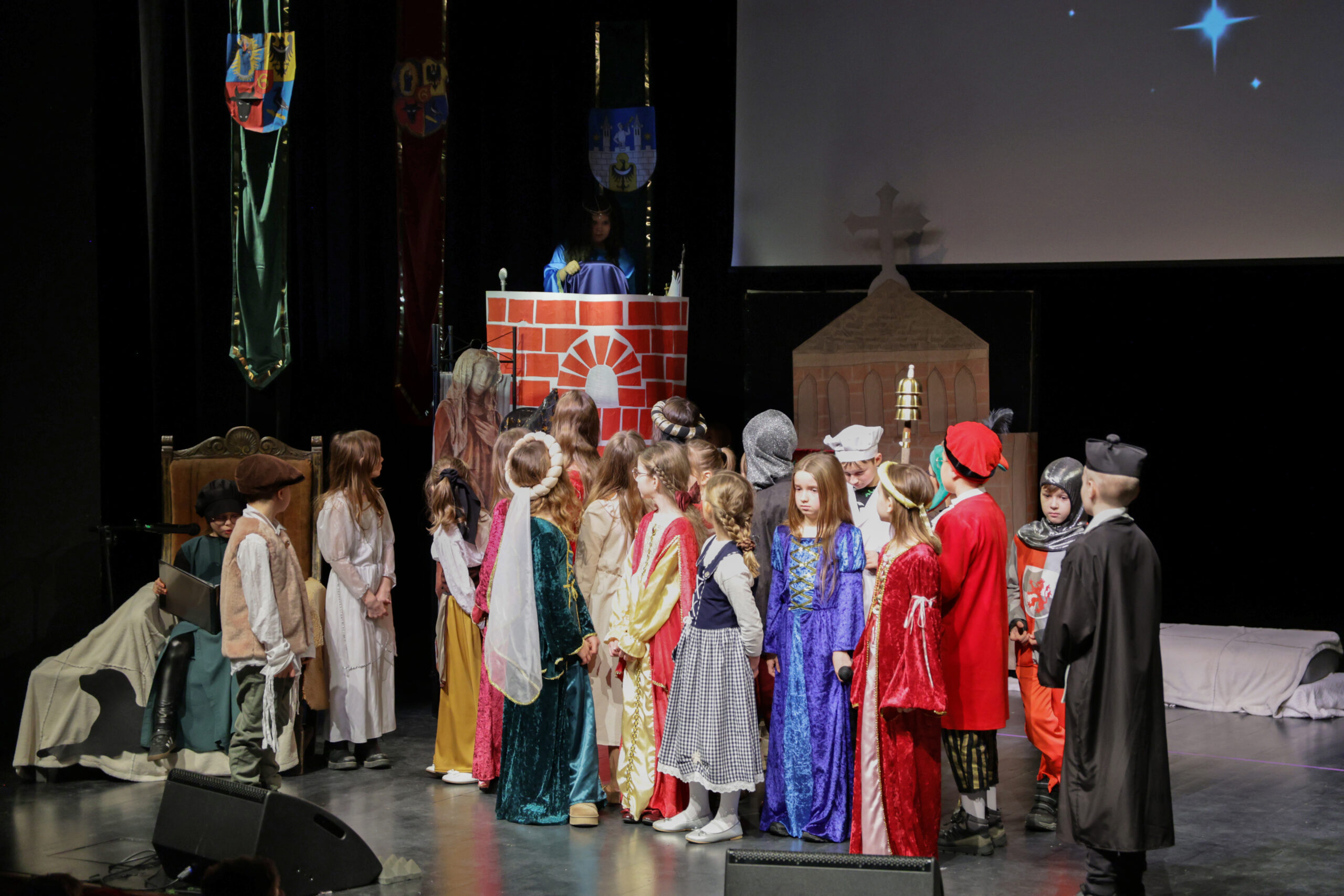 Obejrzeliśmy z zachwytem historię Salomei i Konrada I, gdzie drewniane posągi ożyły w pięknej grze naszych uczniów klas trzecich.