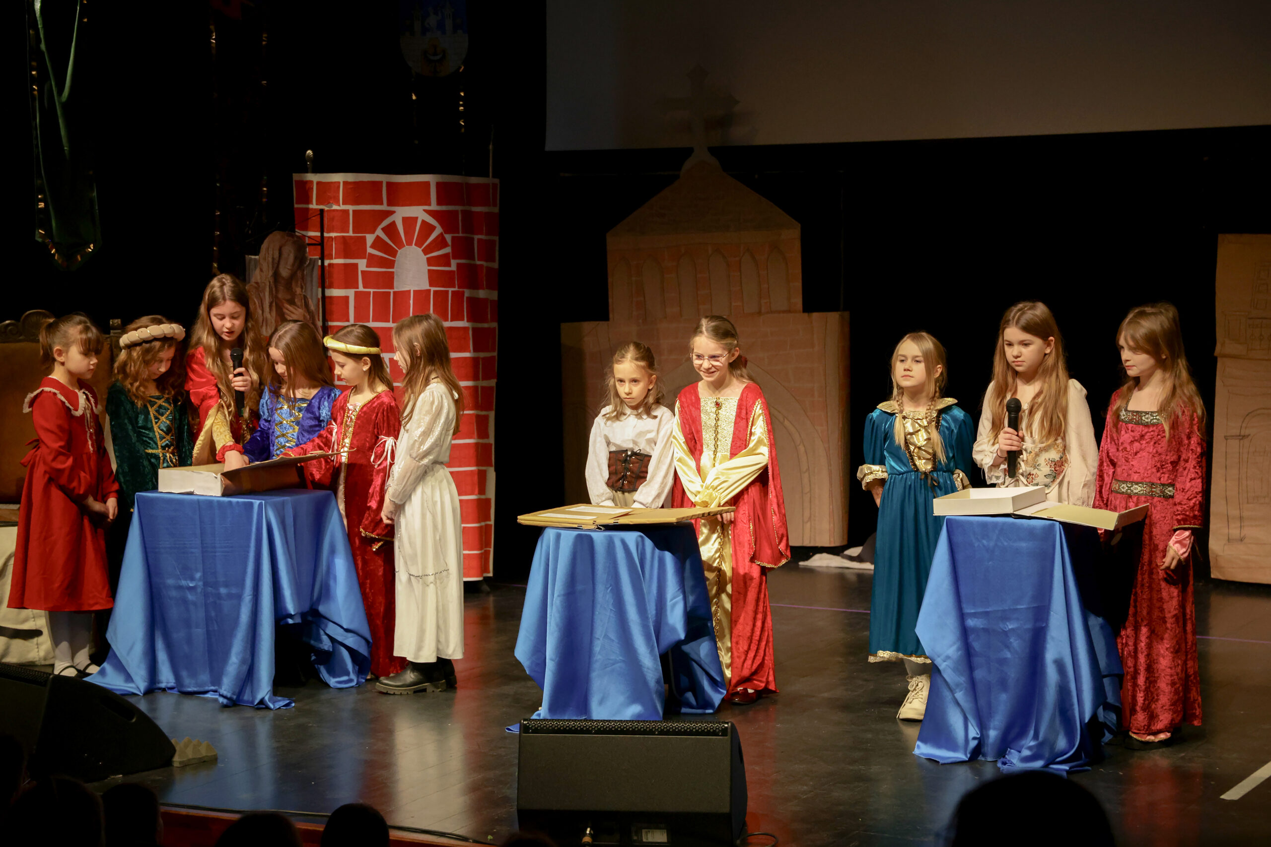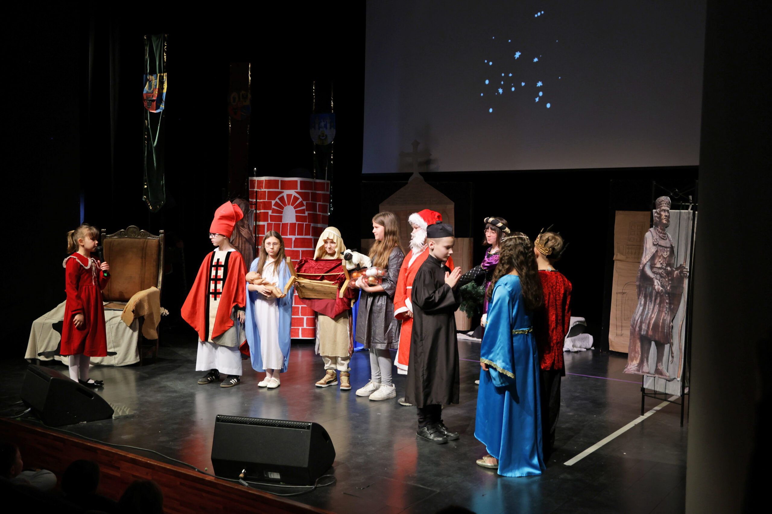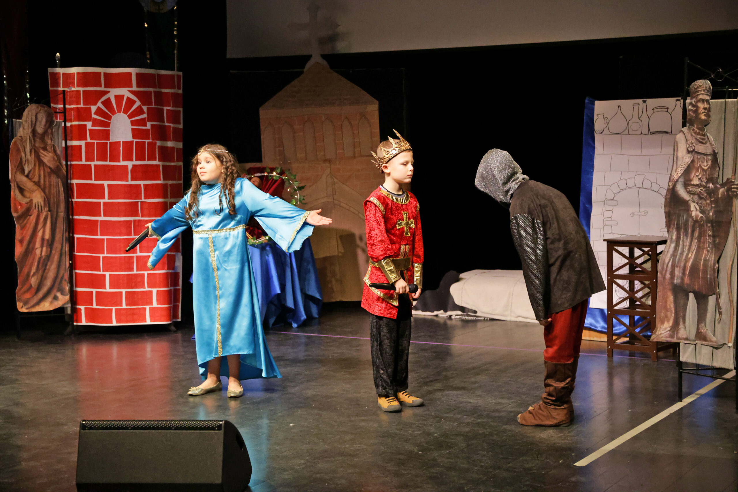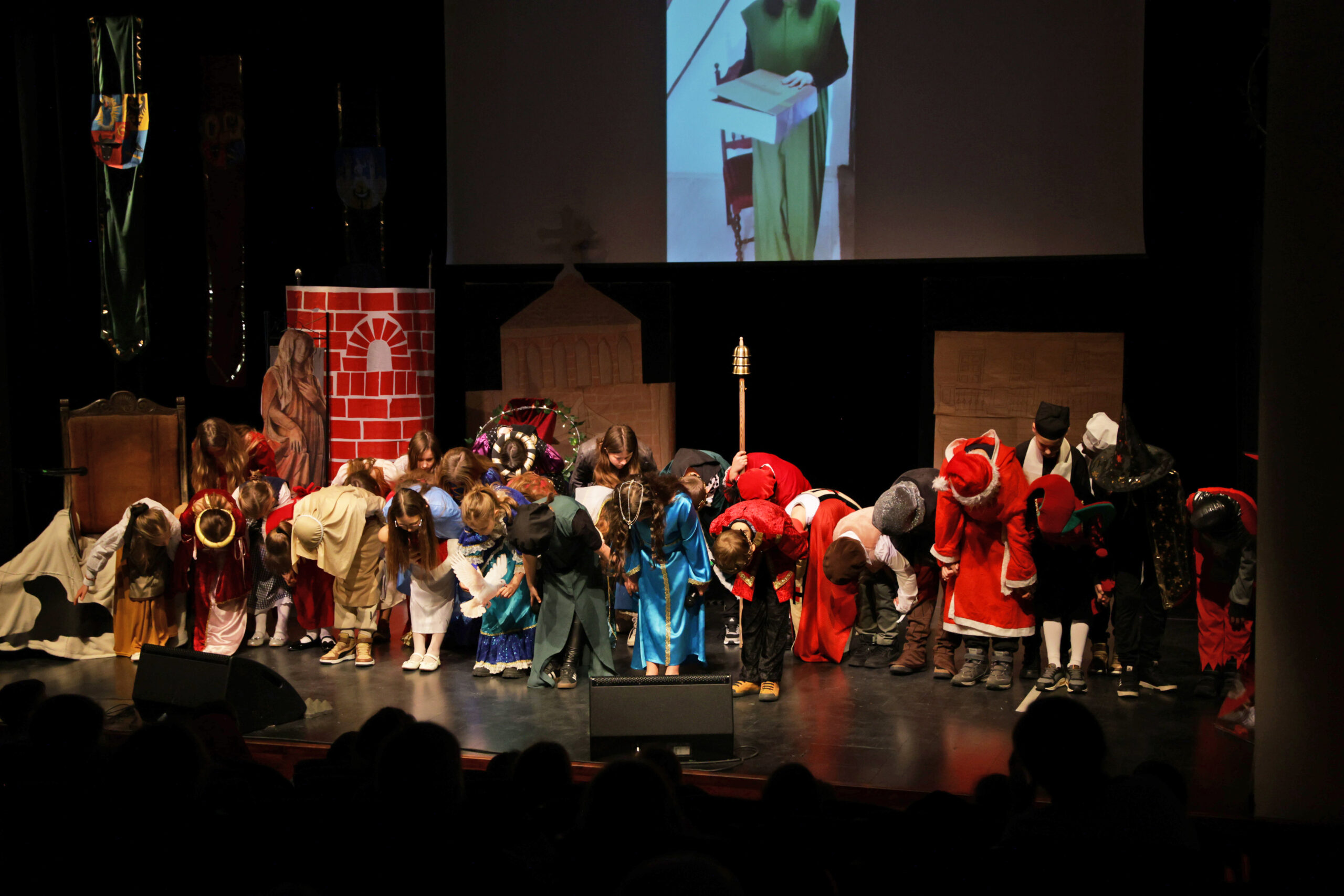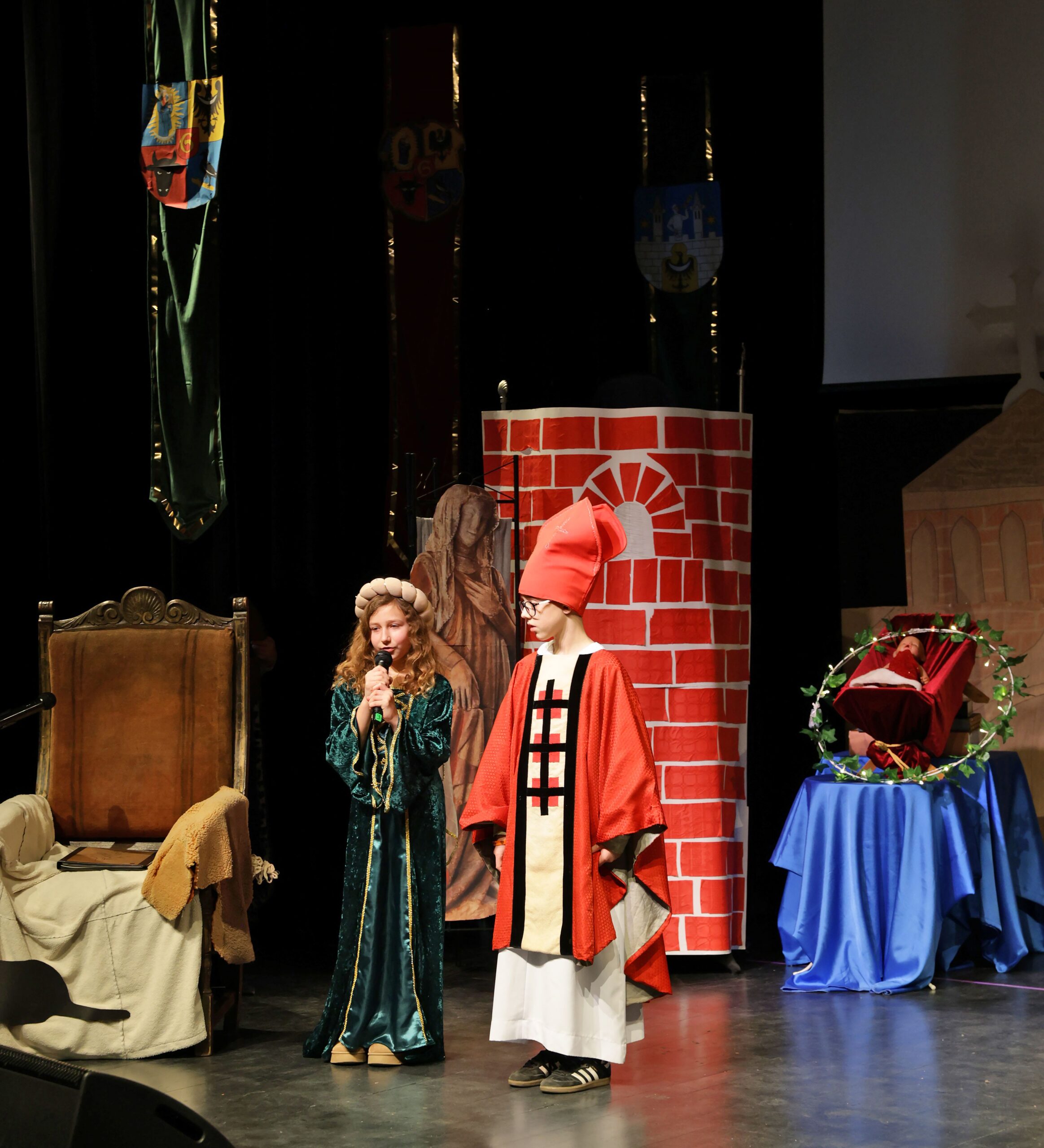 Obejrzeliśmy z zachwytem historię Salomei i Konrada I, gdzie drewniane posągi ożyły w pięknej grze naszych uczniów klas trzecich.