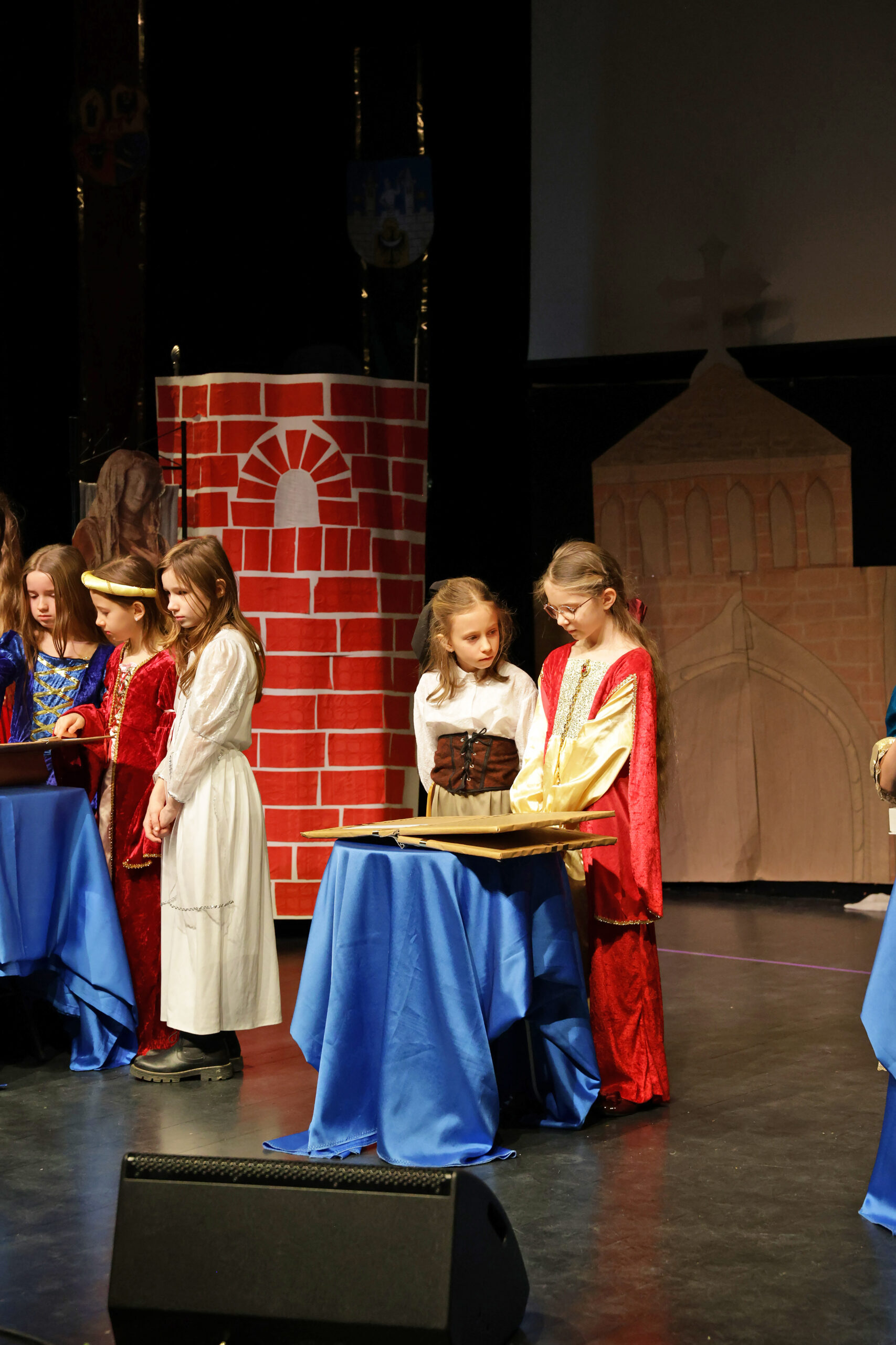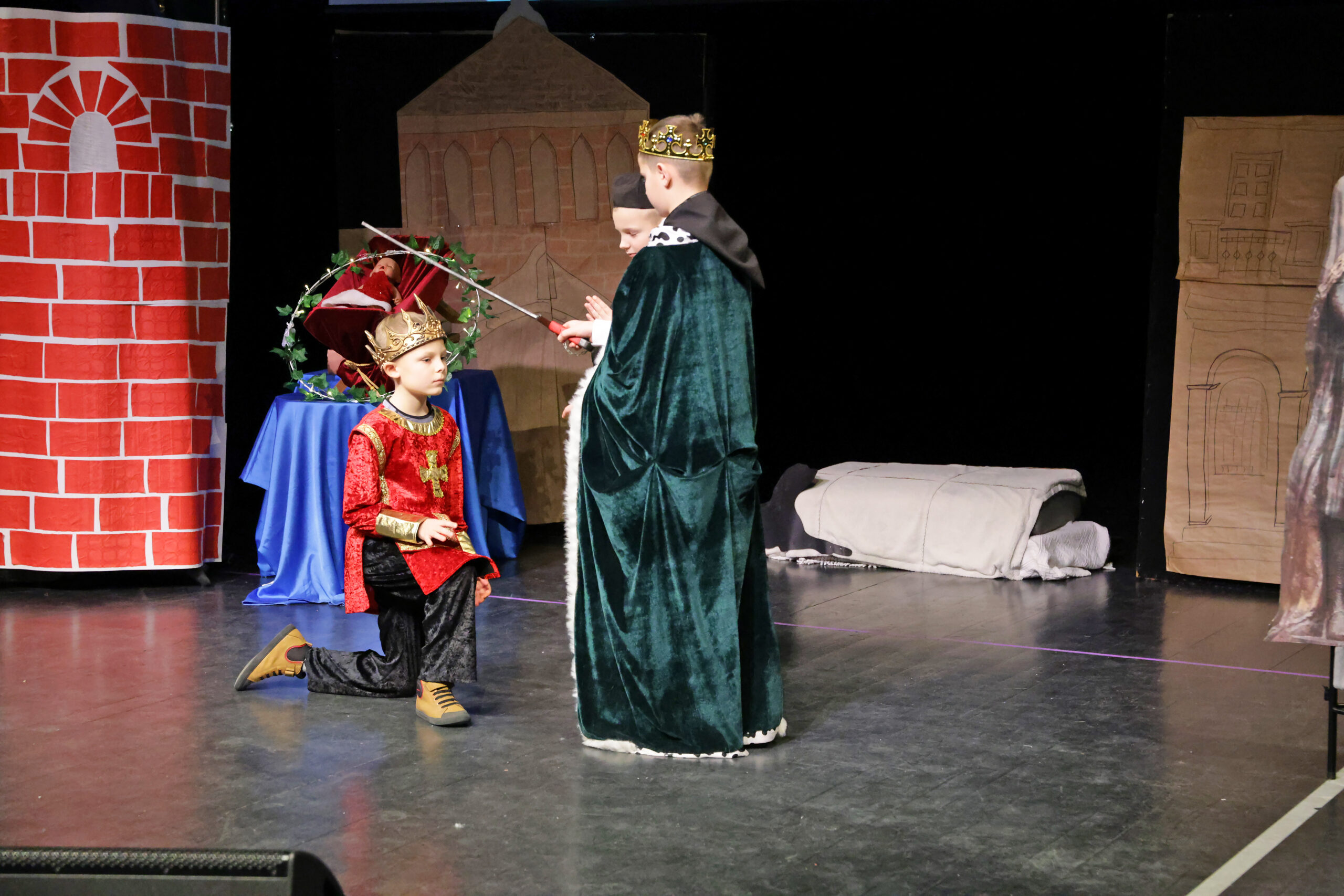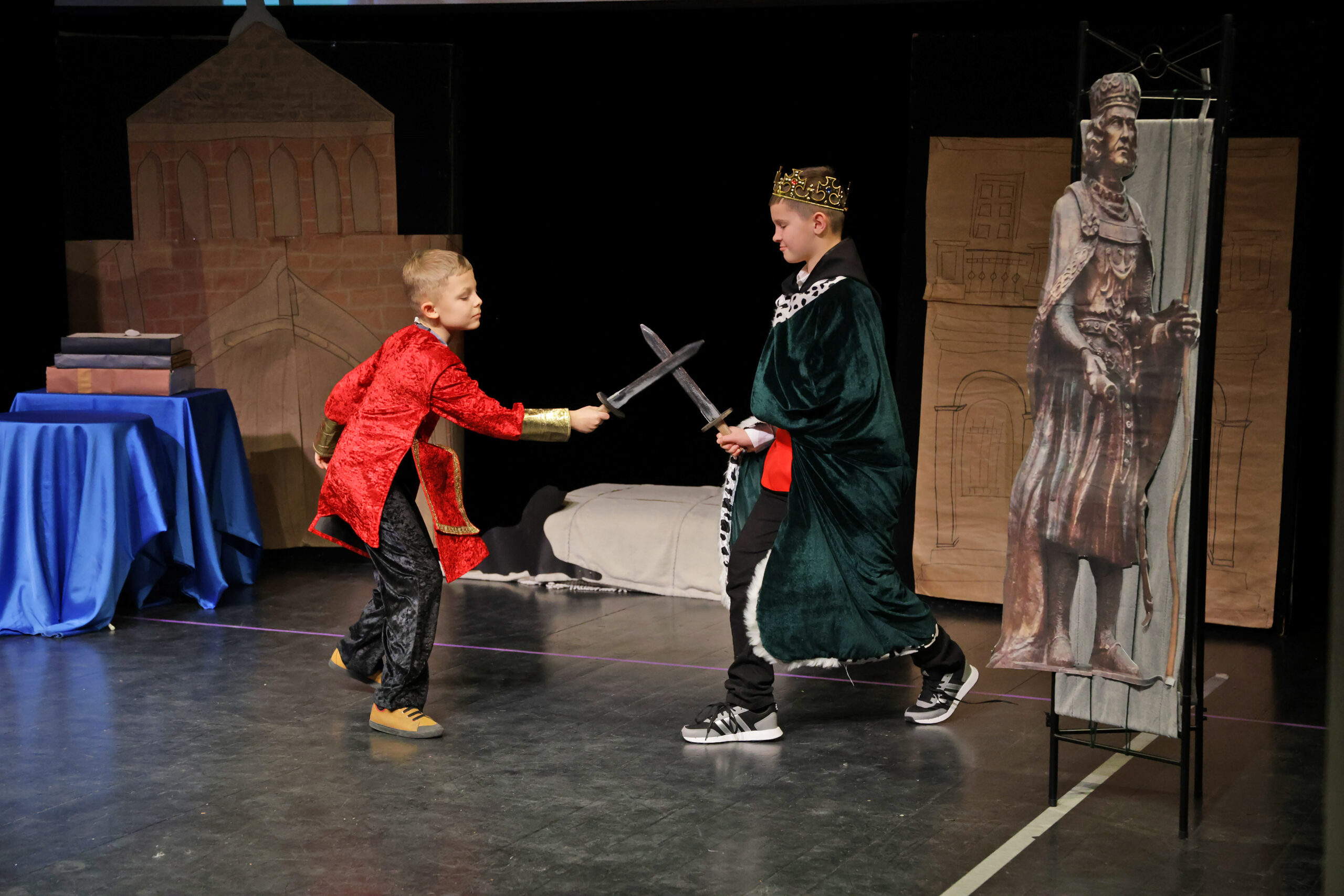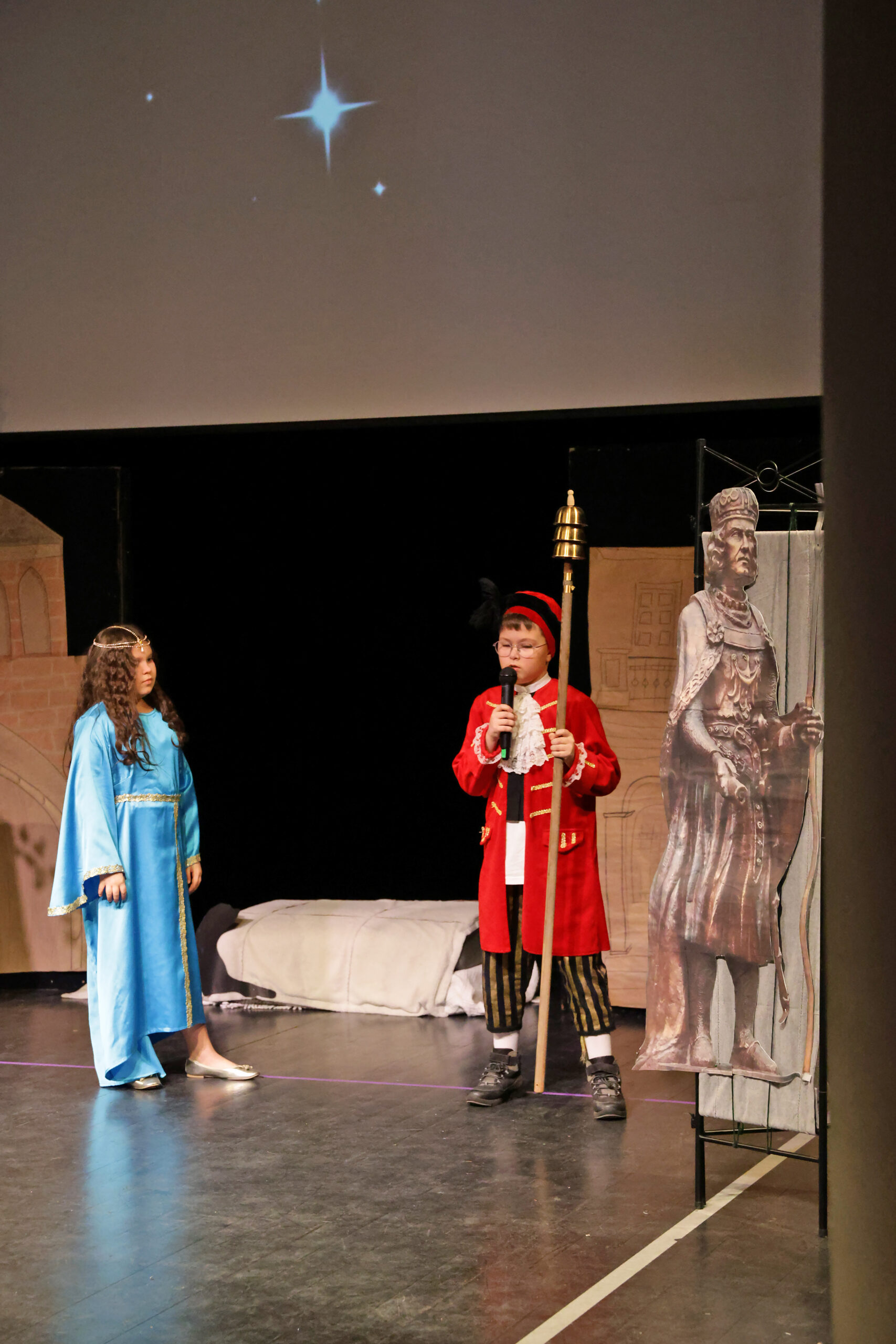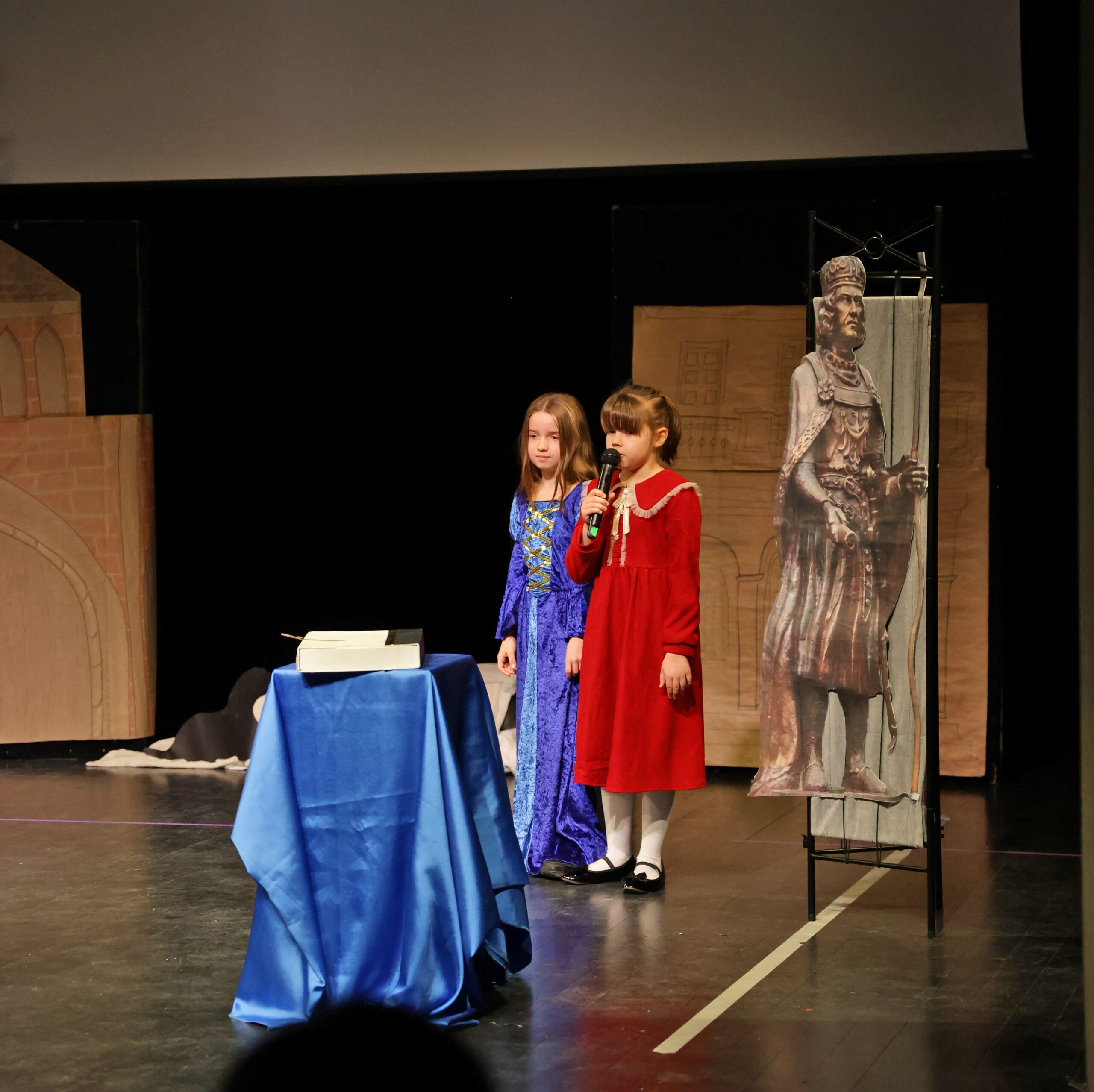 Obejrzeliśmy z zachwytem historię Salomei i Konrada I, gdzie drewniane posągi ożyły w pięknej grze naszych uczniów klas trzecich.
