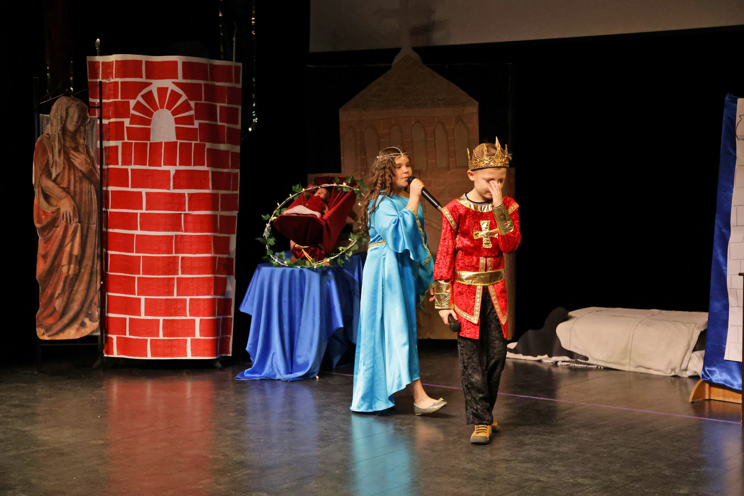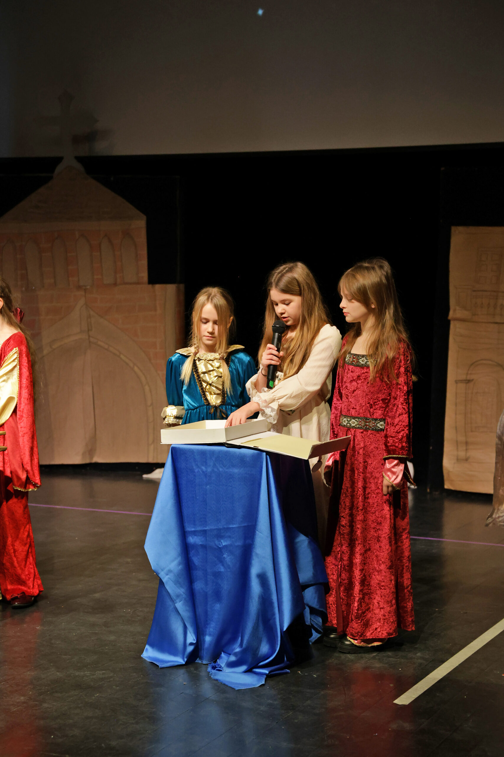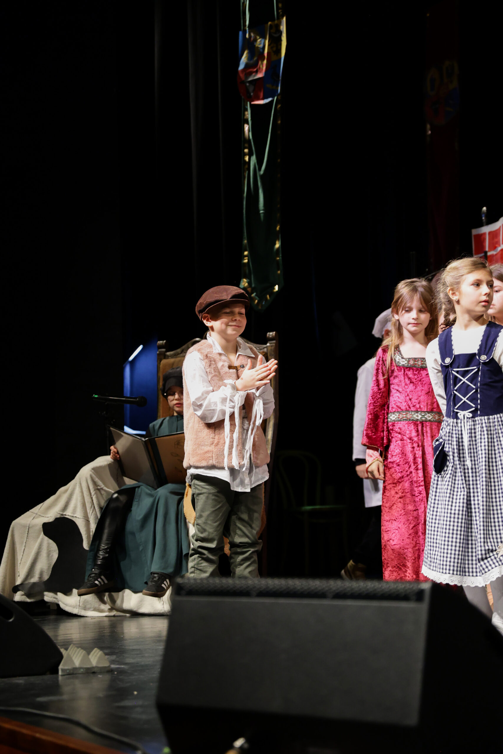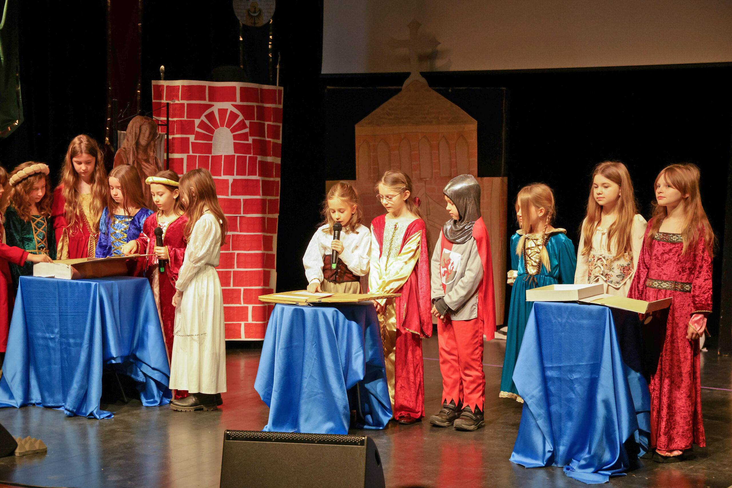 Obejrzeliśmy z zachwytem historię Salomei i Konrada I, gdzie drewniane posągi ożyły w pięknej grze naszych uczniów klas trzecich.