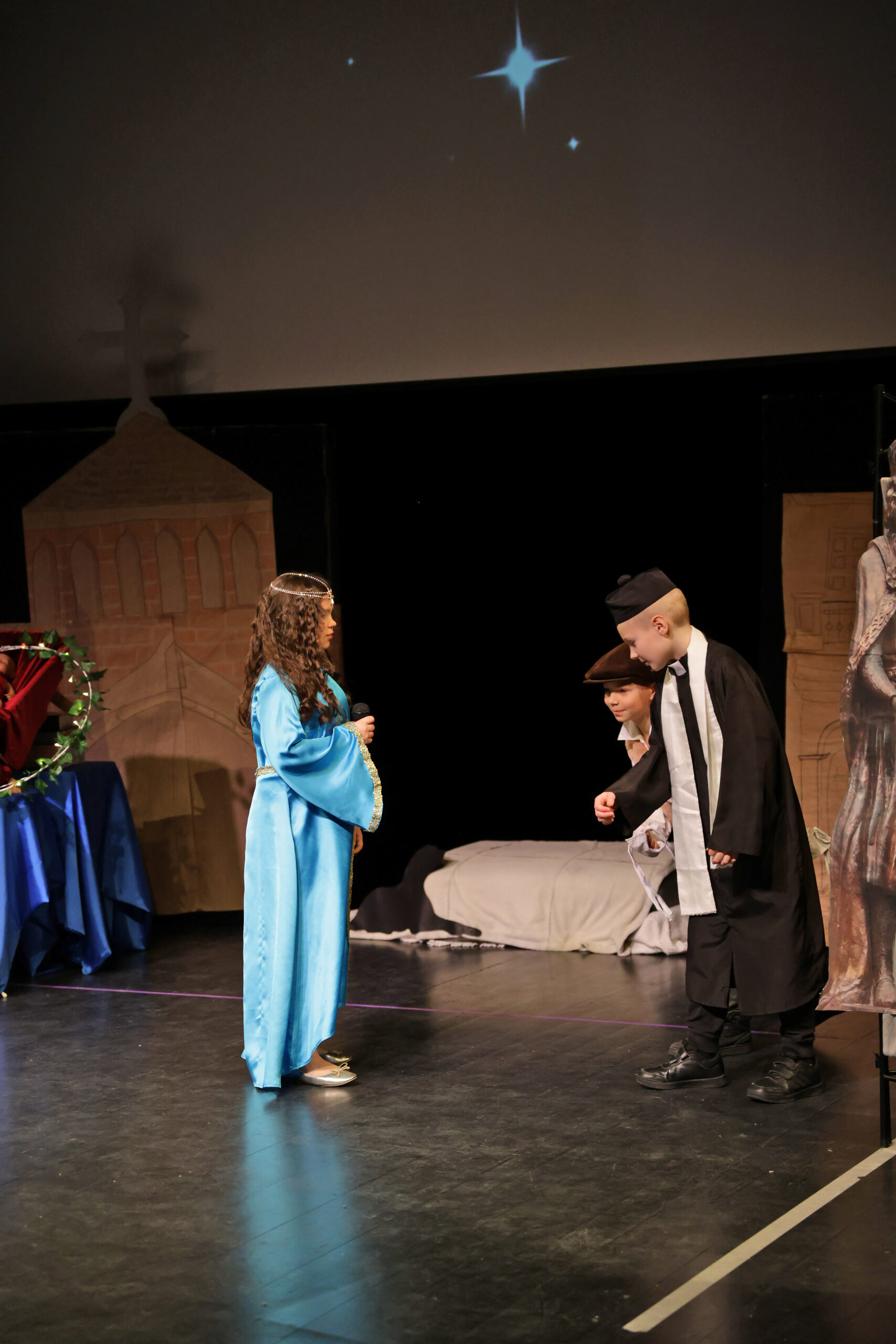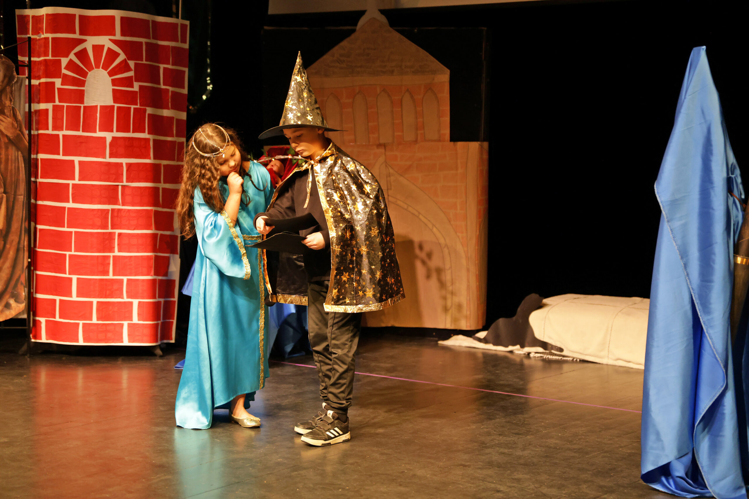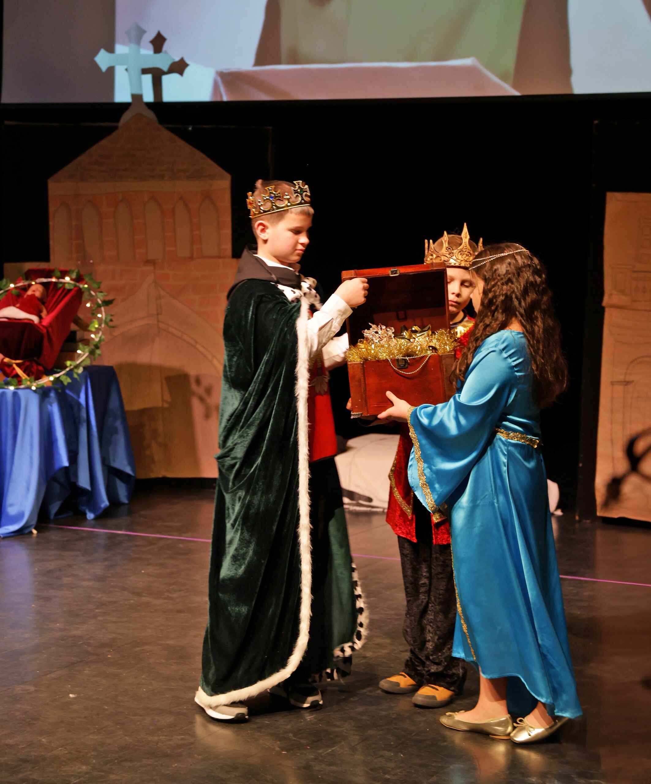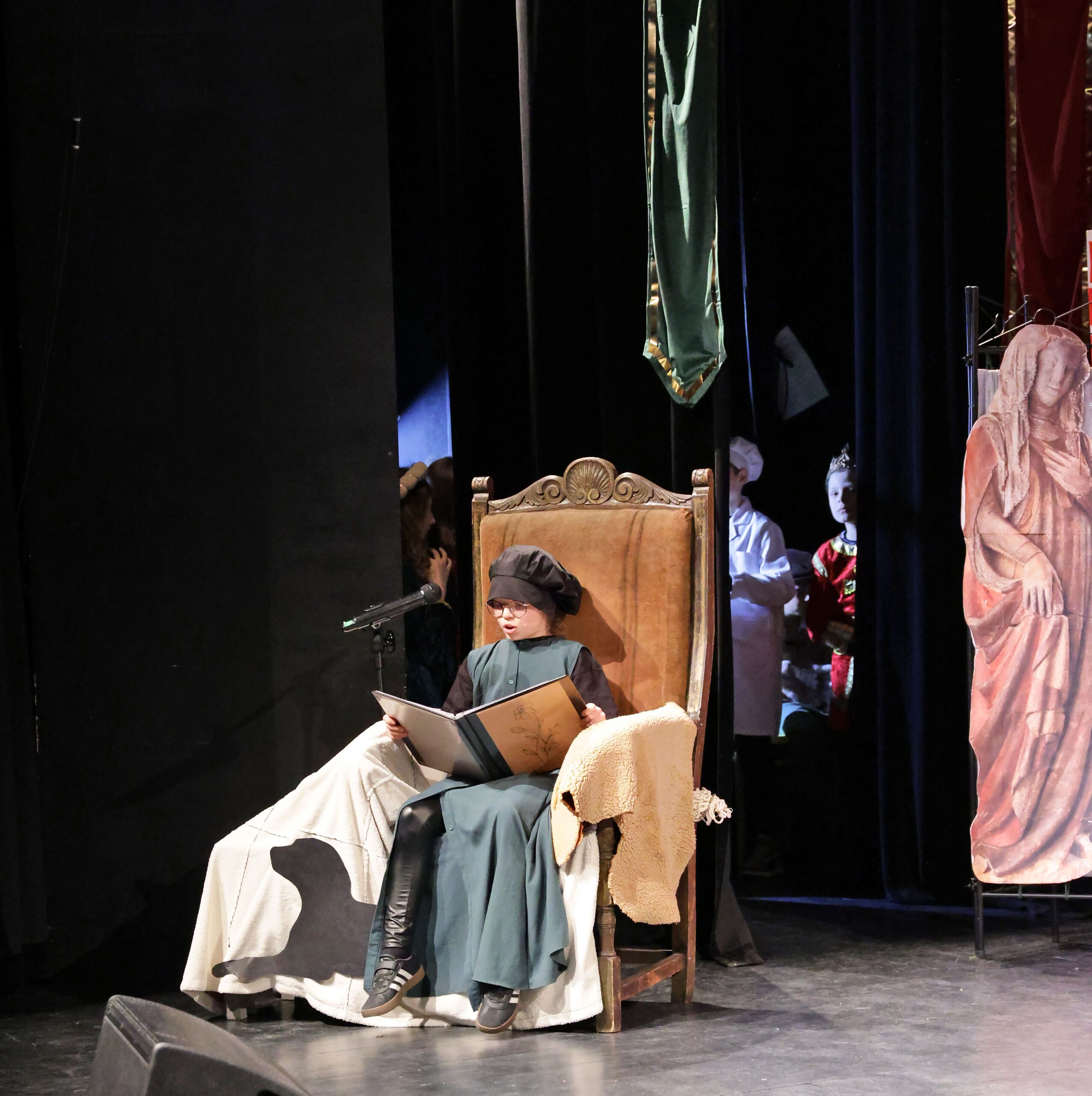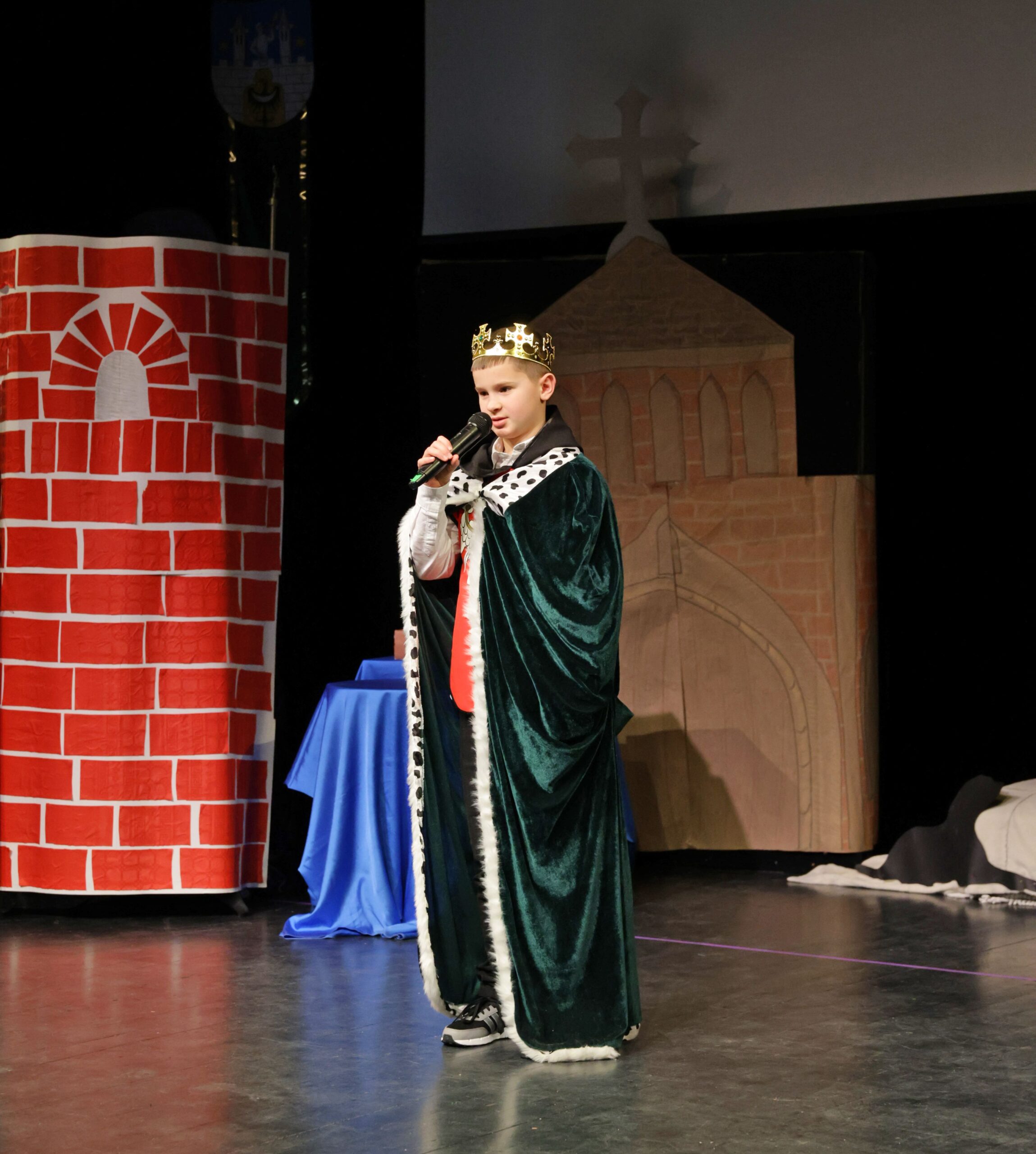 Obejrzeliśmy z zachwytem historię Salomei i Konrada I, gdzie drewniane posągi ożyły w pięknej grze naszych uczniów klas trzecich.