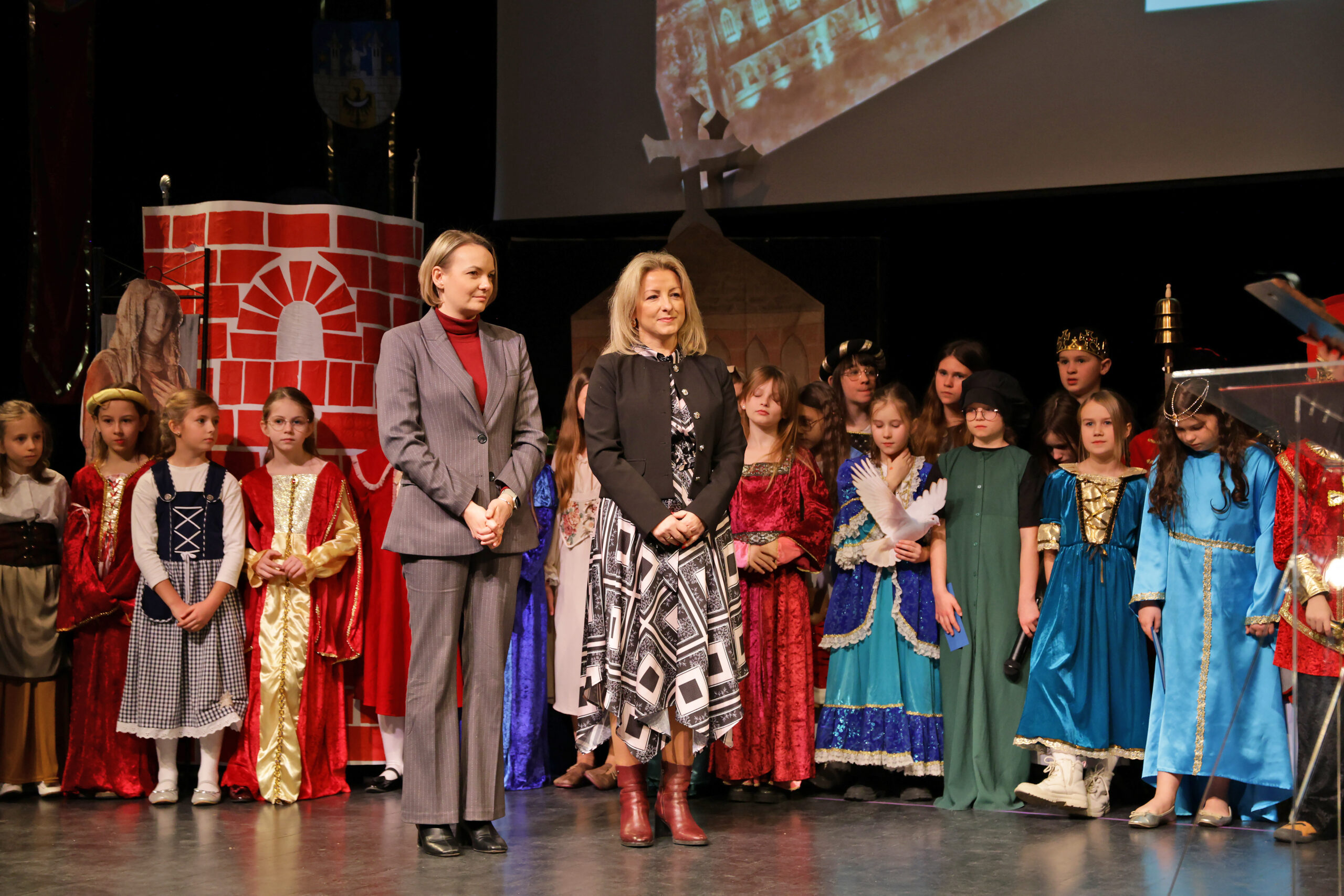 Gorące słowa powitania popłynęły także do Rodziców i Dziadków naszych młodych artystów oraz do dwóch Pań absolwentek, które w naszym projekcie nadały legendzie o Salomei współczesny wymiar, pani Kai Urban-Drozd i Pani Agnieszki Pawlik.