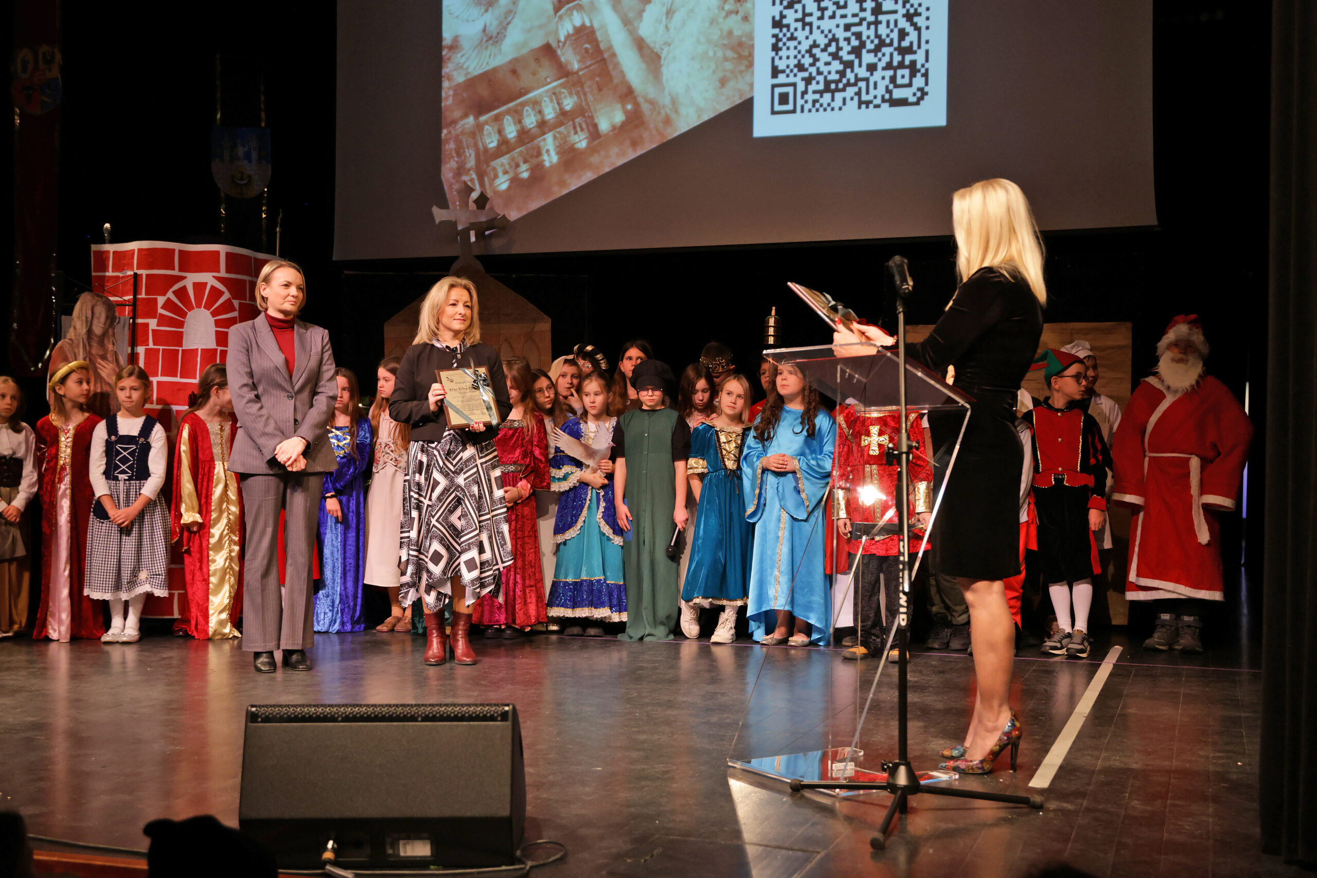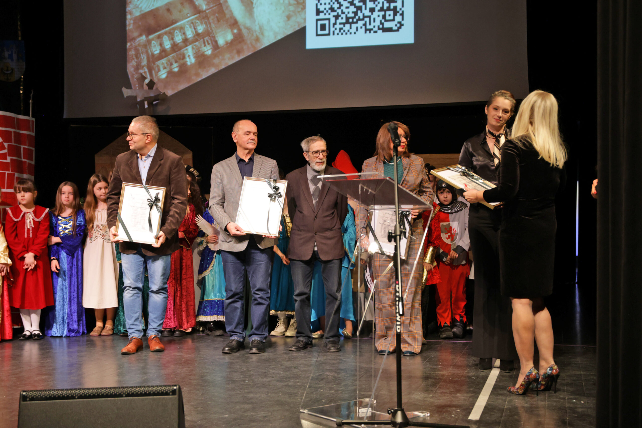 Po spektaklu, na scenę zaproszono naszych gości, aby wręczyć pamiątki i dyplomy z wyrazami uznania za patronat nad projektem oraz okazaną pomoc.