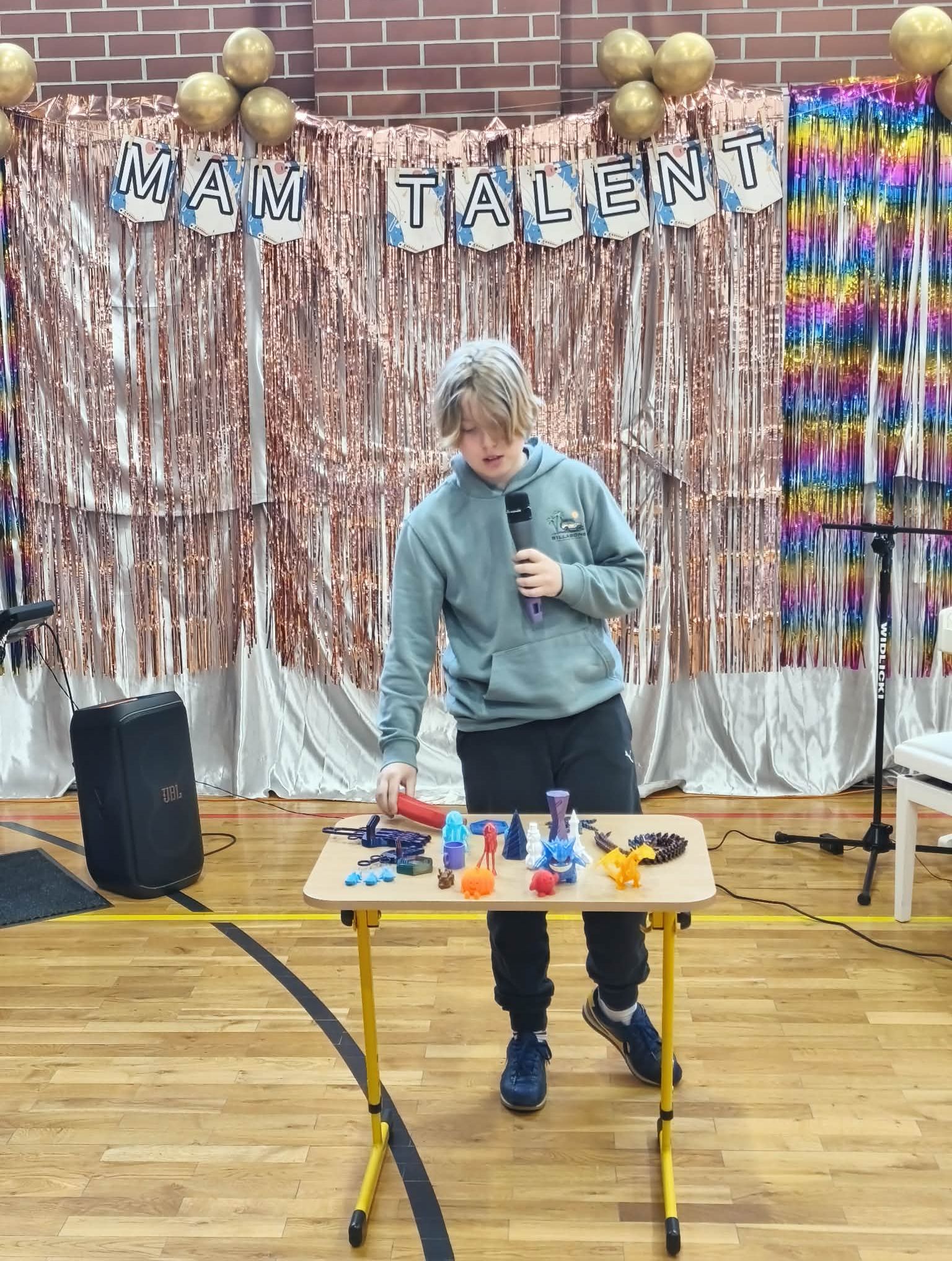 - II Miejsce: Olaf Kuta (klasa 5a) – mistrz nowoczesnych technologii. Olaf zaprezentował zaprojektowane przez siebie i wydrukowane na drukarce 3D modele (m.in. ruchome zwierzęta i heksagony). Zachwycił nie tylko twórczością, ale i umiejętnością „sprzedaży” informacji – w przerwach z wielką charyzmą tłumaczył kolegom proces powstawania prac.