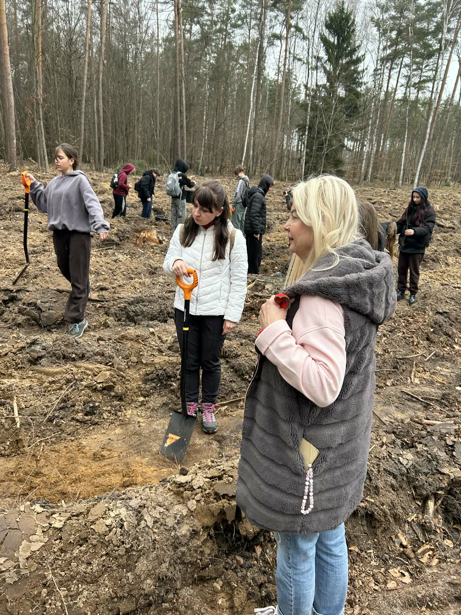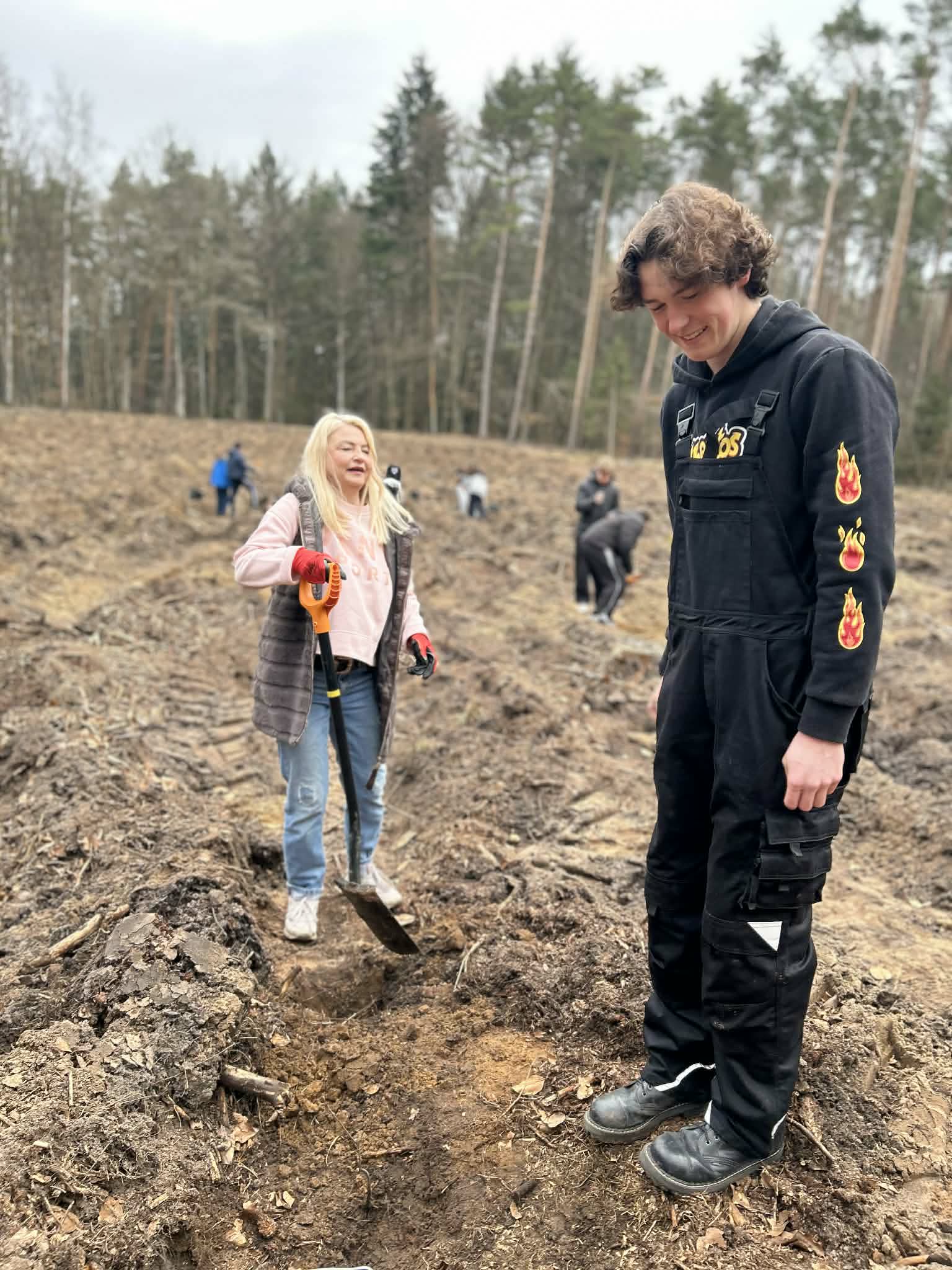 Podczas wydarzenia uczniowie aktywnie uczestniczyli w sadzeniu młodych drzew, ucząc się jednocześnie, jak ważna jest troska o środowisko naturalne i przyszłość naszej planety ![]()